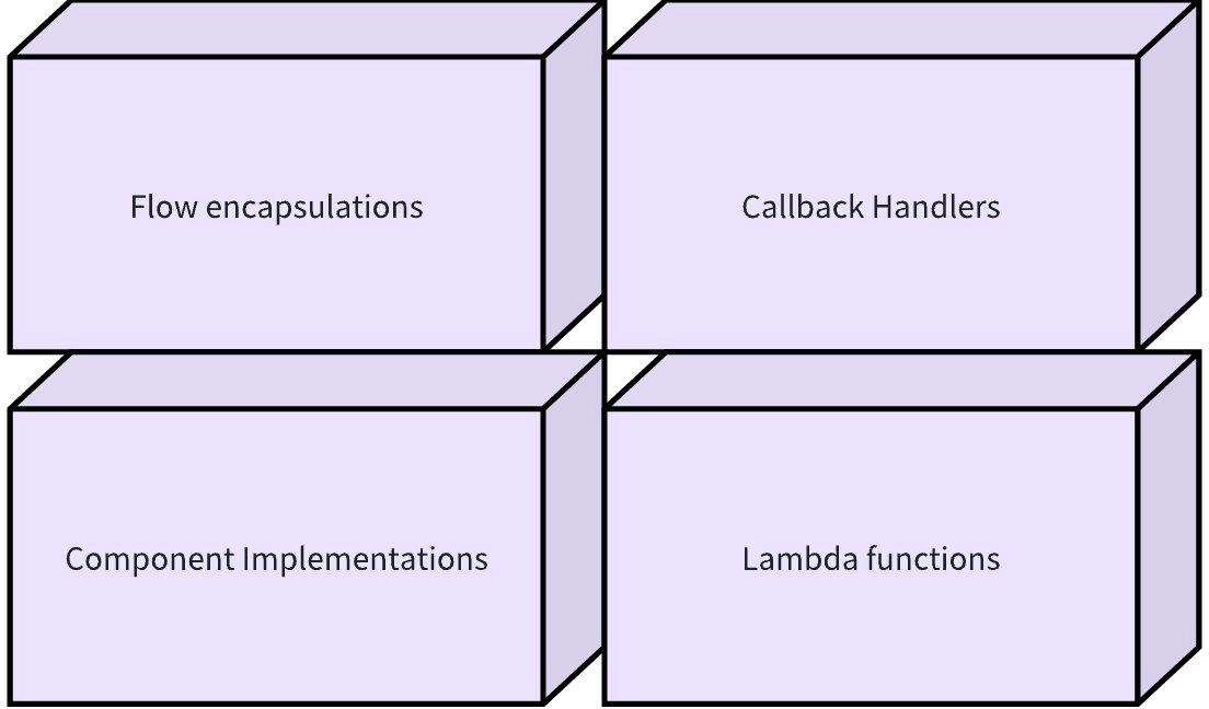 • Lambda: declare custom functions as first-class nodes with full streaming paradigms and callbacks